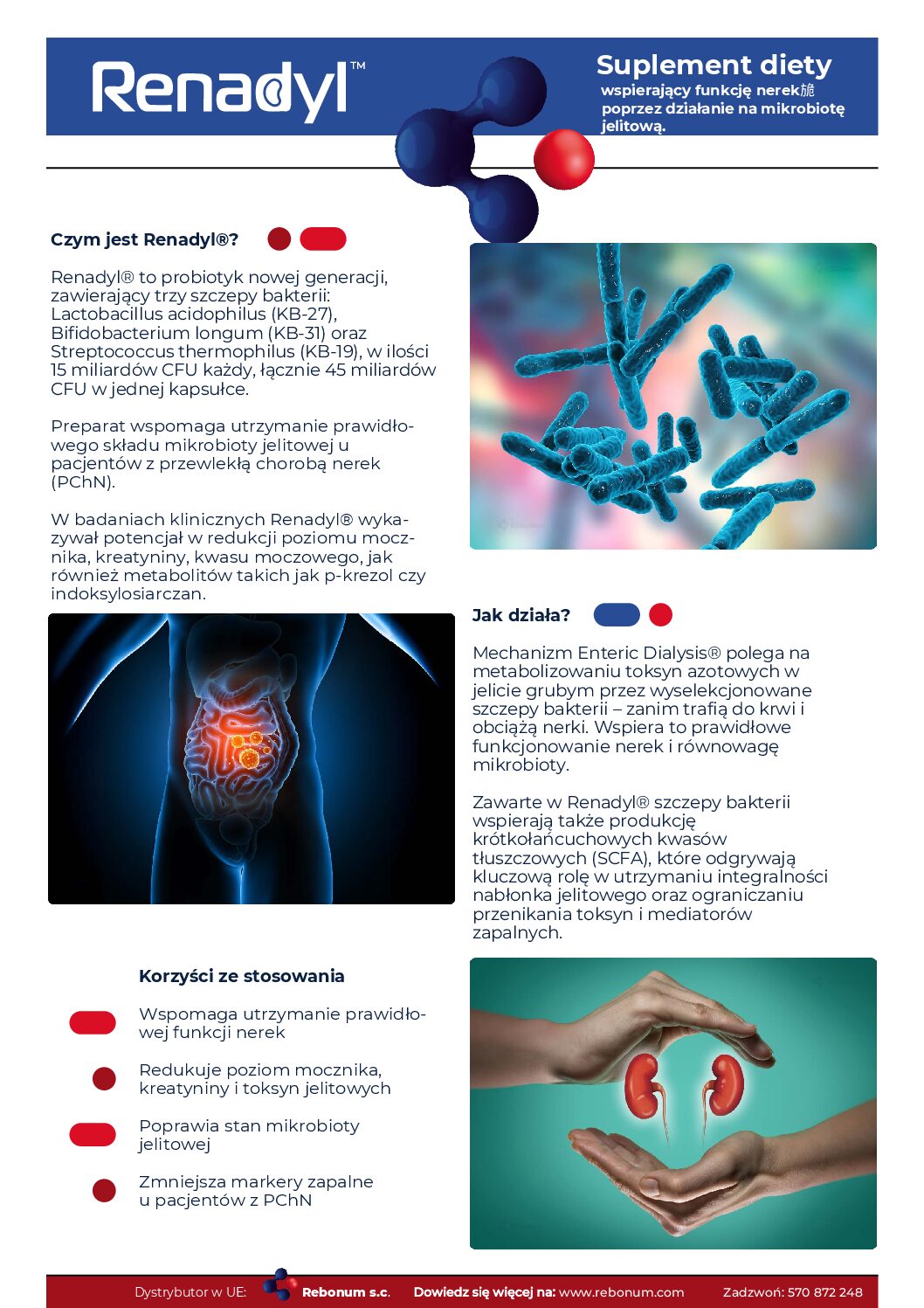 Nie, Renadyl® to suplement diety/synbiotyk. Nie zastępuje leczenia nefrologicznego ani zbilansowanej diety, ale stanowi ich cenne uzupełnienie.