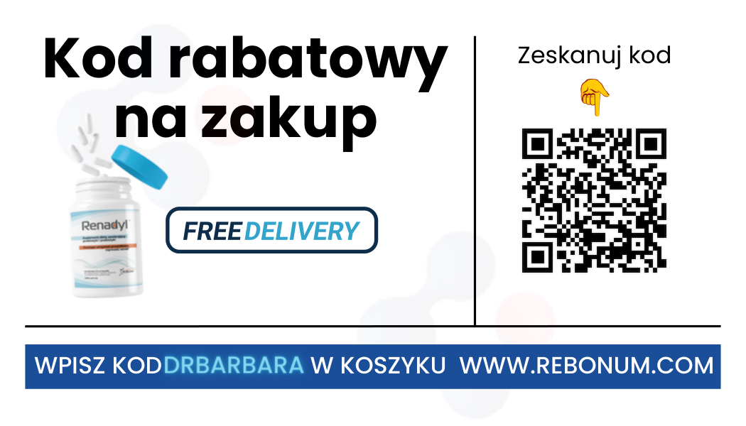 > *Rekomenduję* Renadyl® jako bezpieczne i poparte badaniami klinicznymi wsparcie dla zdrowia nerek. Jest on produkowany w USA zgodnie ze standardami cGMP, a jego składniki mają status GRAS (Generally Recognized As Safe).